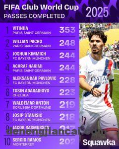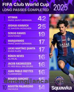 据统计,巴黎圣日耳曼的维蒂尼亚 [...]