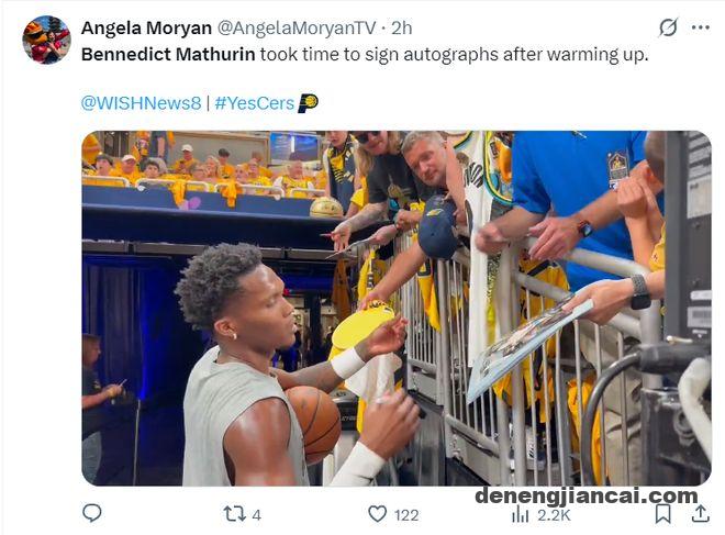 马瑟林回到步行者主场后这个人气就起来了,赛前很多人都来找马瑟林签名,这位年仅23岁的小将已经成为步行者替补席的一把尖刀,他在对阵尼克斯的G5与G6都拿到20+,总决赛这个舞台他也是丝毫不惧。
