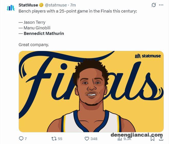 此役他成为2011年基森-特里后首位总决赛替补25分+的球员,也是NBA历史上总决赛第三位替补25分+的球员,比肩特里与吉诺比利。