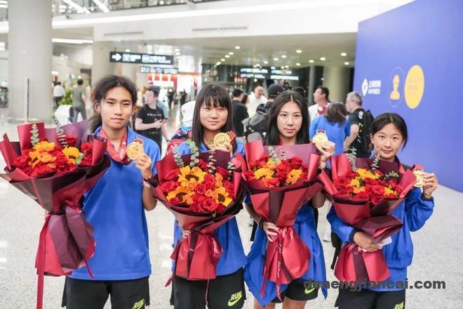 刚刚赢得2025年粤港澳全运会竞体项目首金荣耀的上海u16女足及教练团队今天回沪,虹桥机场内洋溢着热烈的气氛,市足协代表和女足姑娘的亲友后援团手捧鲜花、拉起横幅,共同迎接球队的凯旋。