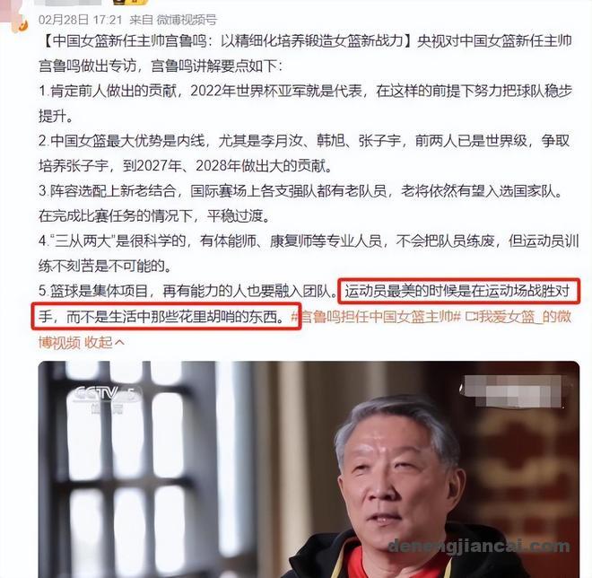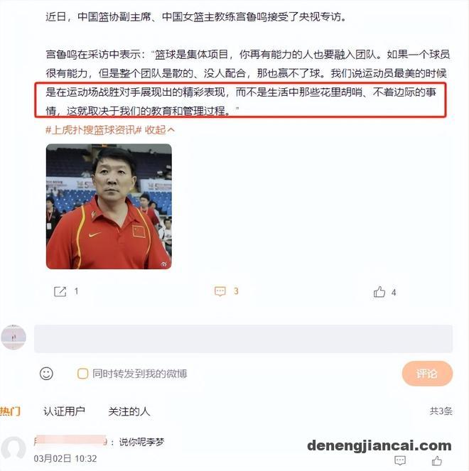 不仅如此宫鲁鸣还特意强调了“教育和管理”这个词,这让人想起了他执教男篮时的铁腕作风。