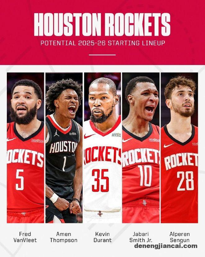 现在美国媒体预测了他们的恐怖新首发,已经震撼了全联盟,分别是范弗利特,阿门汤普森,杜兰特,贾巴里史密斯和申京,这个阵容看着就非常的恐怖,而且统治力很足,一眼望去,已经是一个能够冲击西部前四的阵容了。