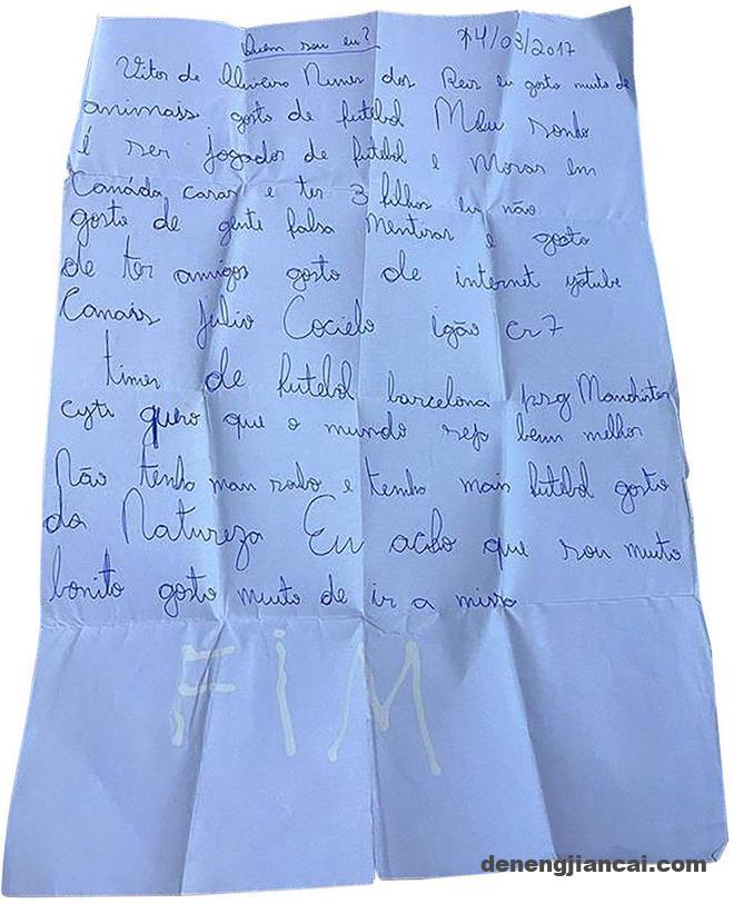 2017 年,年仅11岁的维托尔-雷斯写了一封信,他的家人决定将其保存并在未来几年归还给他,其中写着: