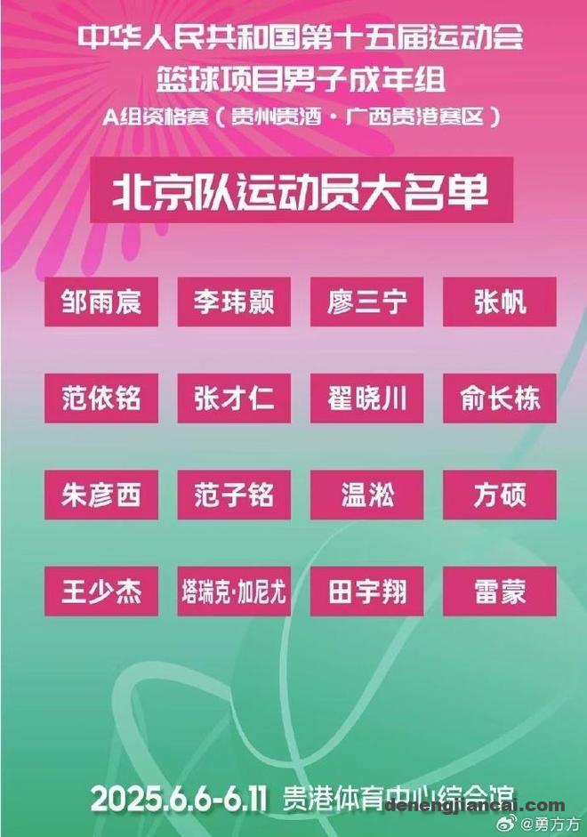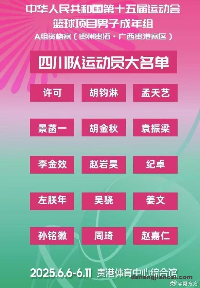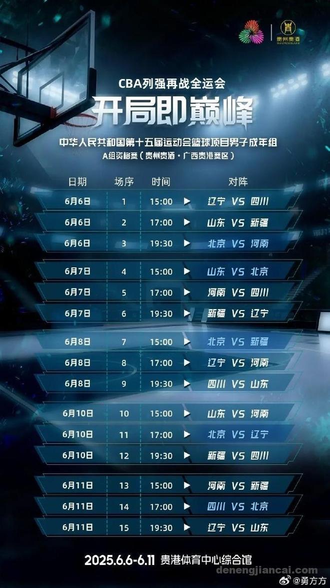 2025年第15届全运男篮成年组预赛A组资格赛赛程出炉,揭幕战将是6月6日15点辽宁对决四川的焦点大战,辽宁由赵继伟、韩德君、付豪与原帅领衔,四川则是拥有周琦、胡金秋与孙铭徽等“雇佣兵”。至于6月11日北京对决四川,周琦将代表四川对决现在的东家北京自然是极具看点。