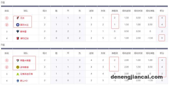 积分榜方面,E组,河床和国米都是1胜1平保持不败,河床以1个净胜球优势力压国米继续领跑,2连败的浦和红钻提前出局,2连平的蒙特雷还是有机会小组出线,前提是他们最后一轮必须击败浦和红钻。F组,多特和弗卢米嫩塞同样是1胜1平保持不败,弗卢米嫩塞也是1个净胜球优势力压多特领跑,最后一轮多特和弗卢米嫩塞都是打平即可稳稳出线,马梅洛迪日落则是必须击败弗卢米嫩塞才能逆袭出线。
