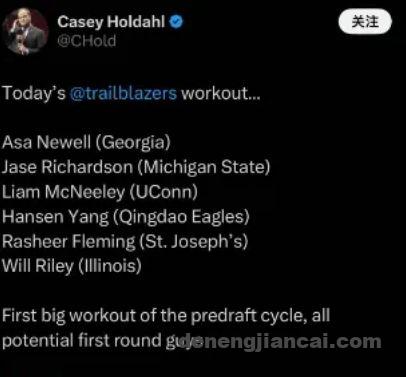 北京时间5月30日,中国19岁新星杨瀚森已经完成NBA球队单独试训第一站,他试训波特兰开拓者表现不俗。如今根据媒体人周鹏报道,杨瀚森试训开拓者的内幕,由前青岛队友里斯的极力推荐功劳,里斯已经效力开拓者两个赛季。