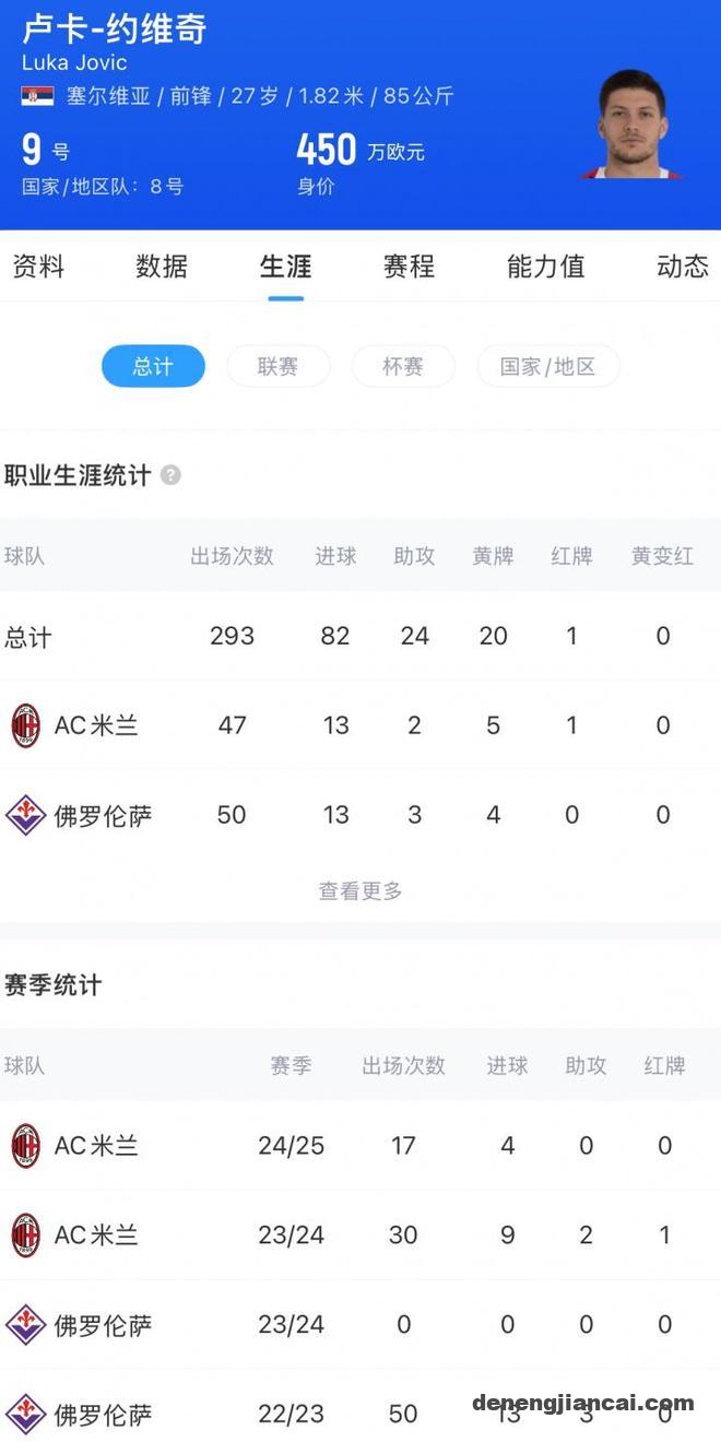 2023年夏窗,米兰花费50万欧元的转会费,从佛罗伦萨签下约维奇。27岁的约维奇本赛季为米兰出场17次打进4球。球员德转身价仅为450万欧,他巅峰时曾达到过6000万欧。