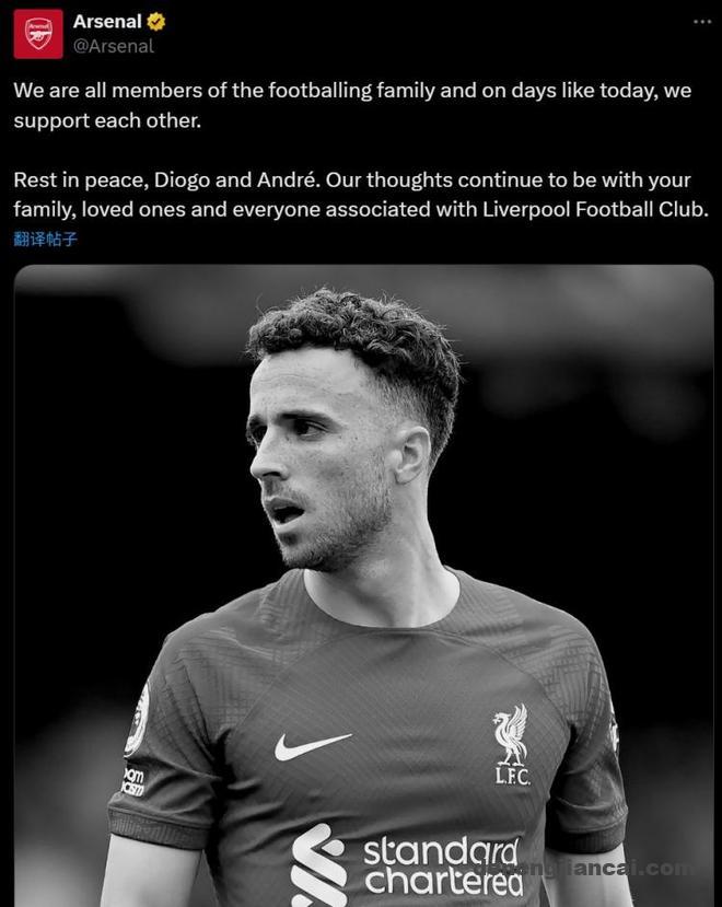 直播吧7月4日讯 利物浦前锋若塔因车祸去世,年仅28岁。 阿森纳官方也送上悼念:“我们都是足球大家庭的成员,在今天这样的日子里,我们互相支持。安息吧,迪奥戈和安德烈。我们的思念与你们的家人、挚爱以及利物浦足球俱乐部的每一位同在。” 意昂体育新闻中心 意昂体育-全方位的体育赛事平台新闻中心 切尔西9号魔咒!包括托雷斯、奥巴梅扬等名将,德拉普能否打破? 内维尔:在曼联第一份职业合同周薪210镑 拿到钱第一时间首付买房