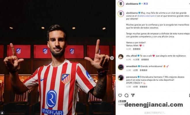 他晒出了自己身披马竞球衣在更衣室的照片并表示:“非常非常高兴能加入像马竞这样伟大的俱乐部,我们将迎来非凡的挑战!非常感谢大家的信任,以及大家对我的热情欢迎。我期待着与优秀的队友和独一无二的球迷一起开启新的时代。加油!马竞❤️”