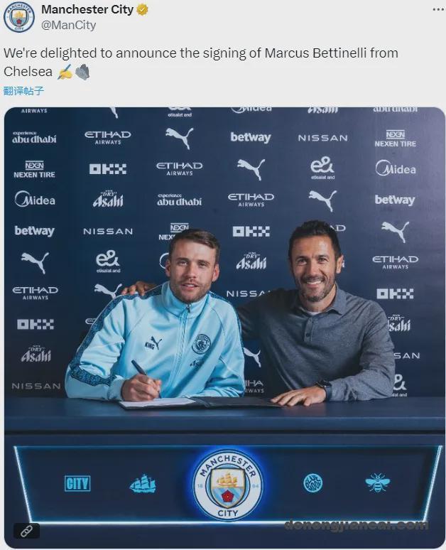 据悉,曼城为贝蒂内利支付了一笔象征性的转会费,这名老将此前和切尔西的合同明年夏天到期。