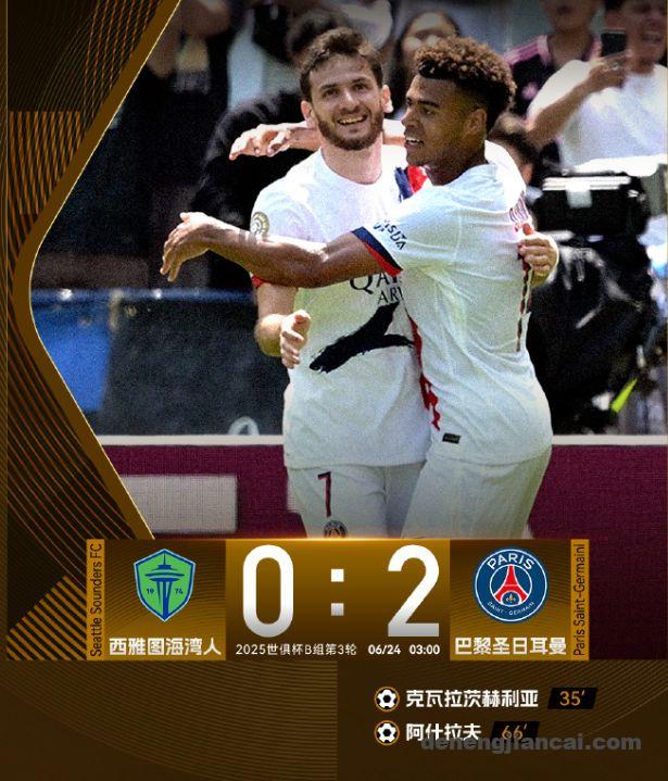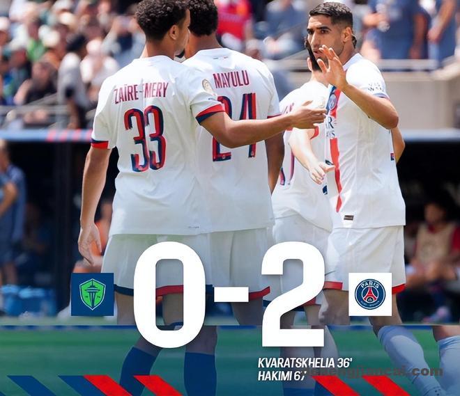 世俱杯小组赛B组第3轮在西雅图流明球场开战,西雅图海湾人在主场0比2不敌巴黎圣日耳曼,进球功臣是克瓦拉茨赫利亚和阿什拉夫,赛后巴黎以小组头名身份晋级16强。西雅图海湾人则遭遇三连败,以0分垫底结束了本届世俱杯之旅。